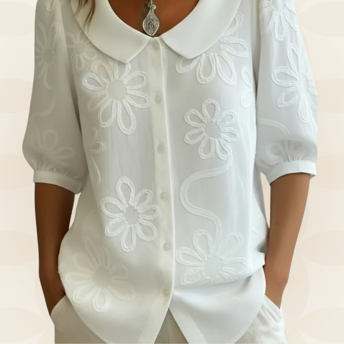 Jeanet – Blouse geborduurde bloemen