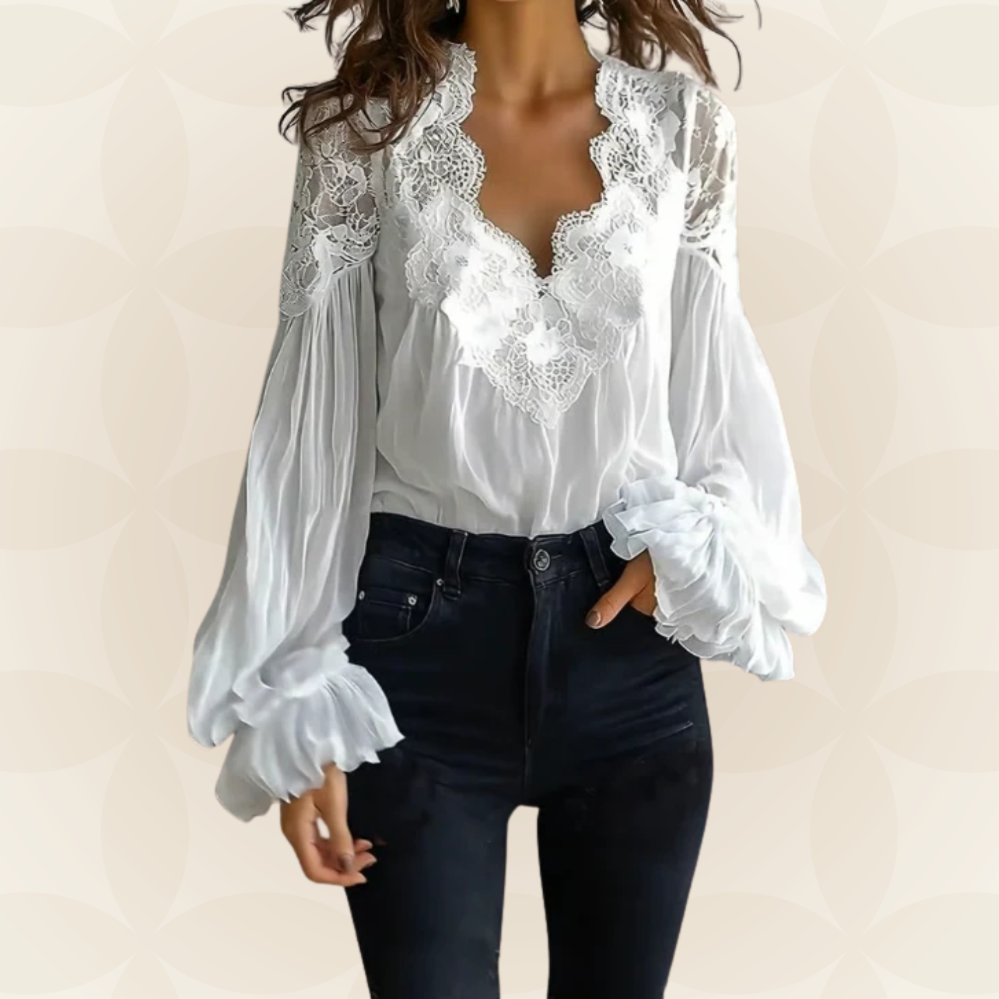 Marjo - Blouse met bloemenkant en lantaarnmouwen