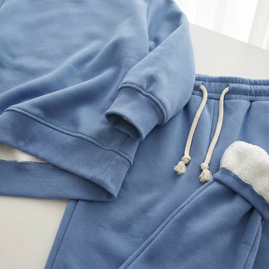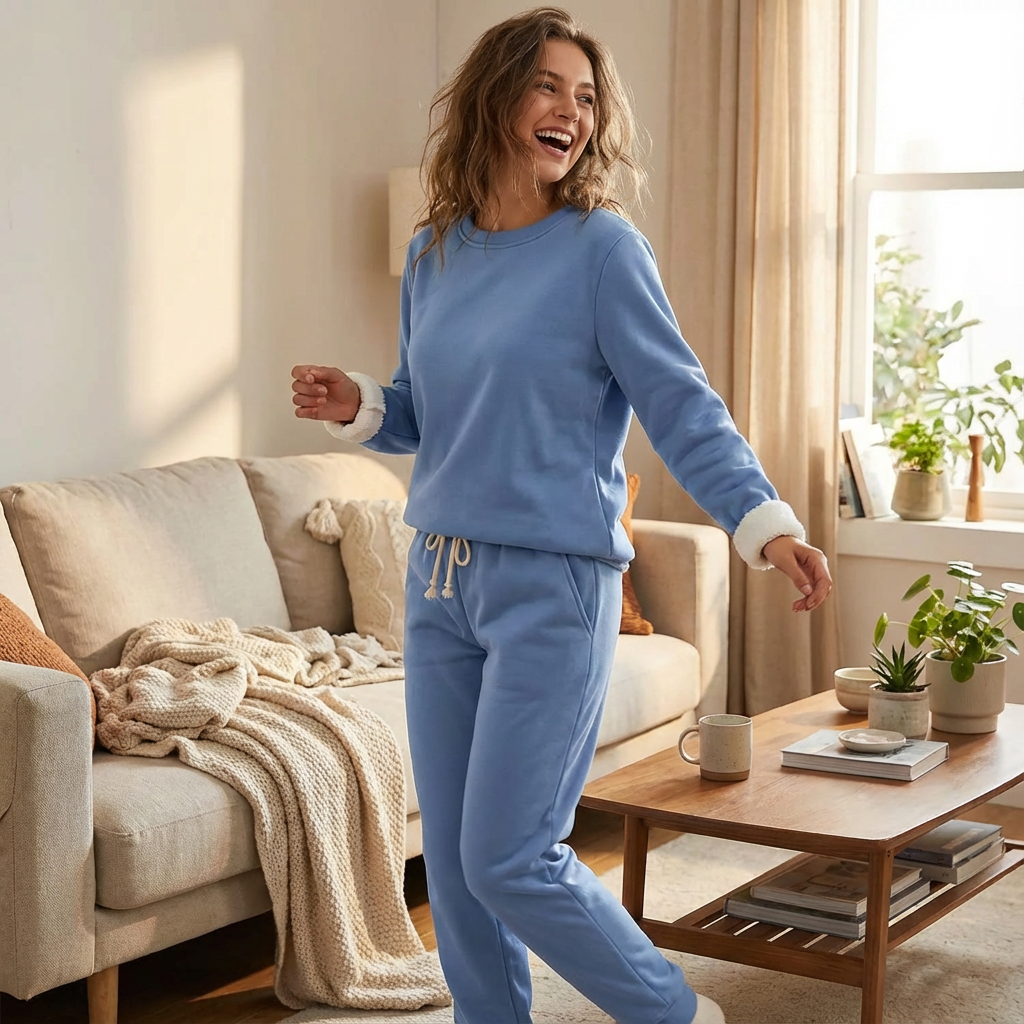 De Karen lounge set is gemaakt voor dagen waarop je alleen maar zacht, warm en ontspannen wilt zitten. De gevoerde binnenkant voelt direct behaaglijk aan en de broek met elastische tailleband beweegt soepel met je mee.