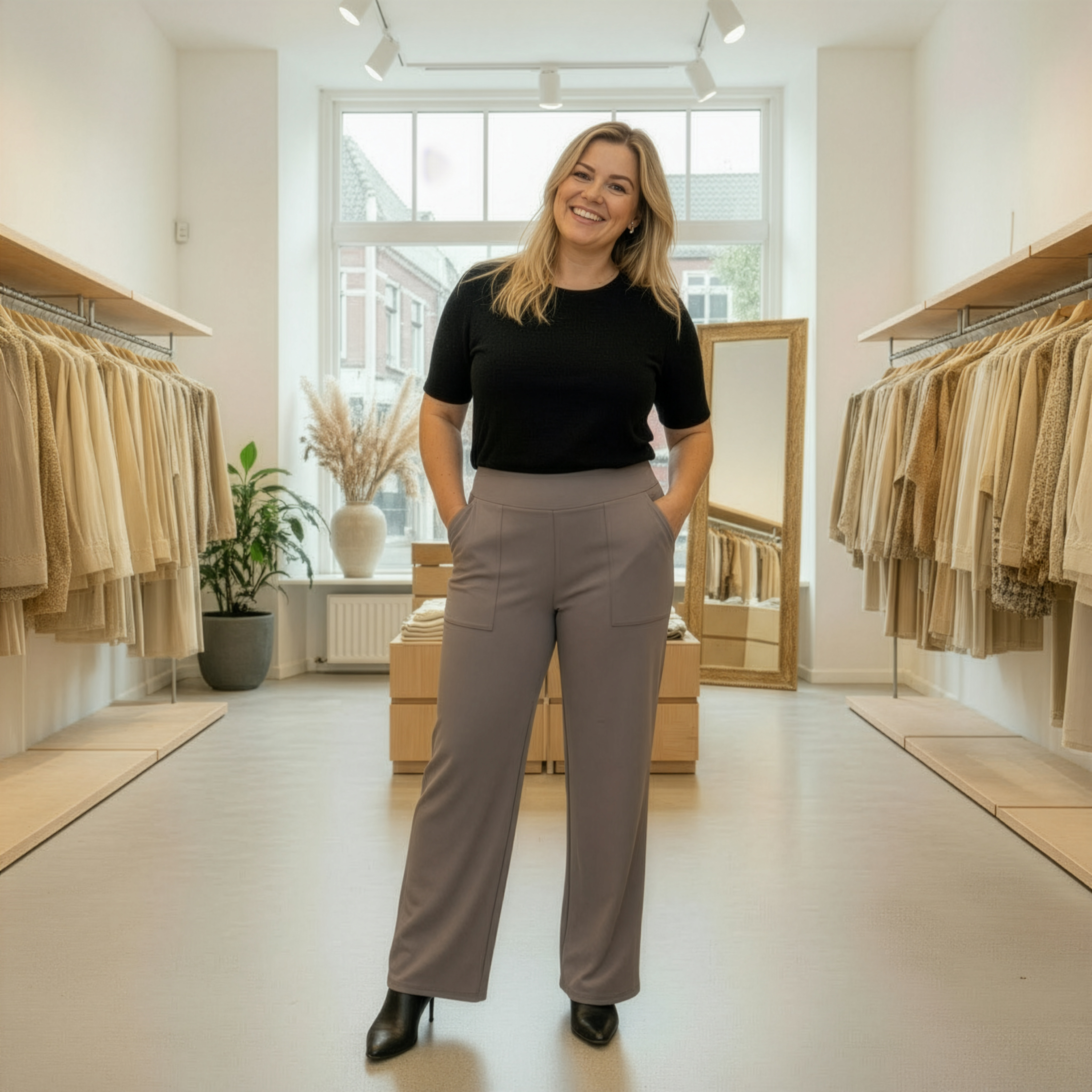 De Sanne broek is ontworpen om je de hele dag door comfortabel te laten voelen, zonder in te leveren op stijl. De zachte stretchstof vormt zich moeiteloos naar je lichaam en beweegt met je mee bij elke stap.
